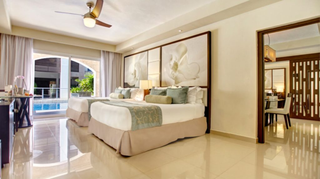 Enjoy a perfect night’s sleep on your all inclusive Punta Cana getaway with our heavenly premium handcrafted DreamBed, designed exclusively for Royalton Luxury Resorts. Offering exceptional comfort and support with 30% more double tempered pocketed coils than conventional mattresses, a patented ‘Solo Split’ system to prevent motion transfer, a 3″ high-density foam Euro-top and hypoallergenic mattress cover, the DreamBed mattress brings the serenity of your tropical destination right into your hotel room.